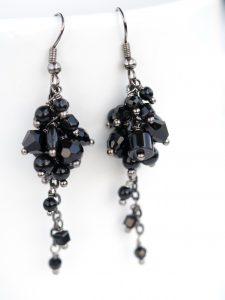 črni uhani s steklenimi perlicami