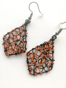 oranžno črni uhani iz navite žice