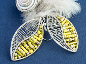 ← rumeno srebrni uhani iz žice in perlic ‘listi’