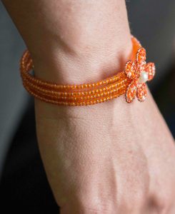 Oranžen komplet nakita z rožicami – zapestnica in ogrlica