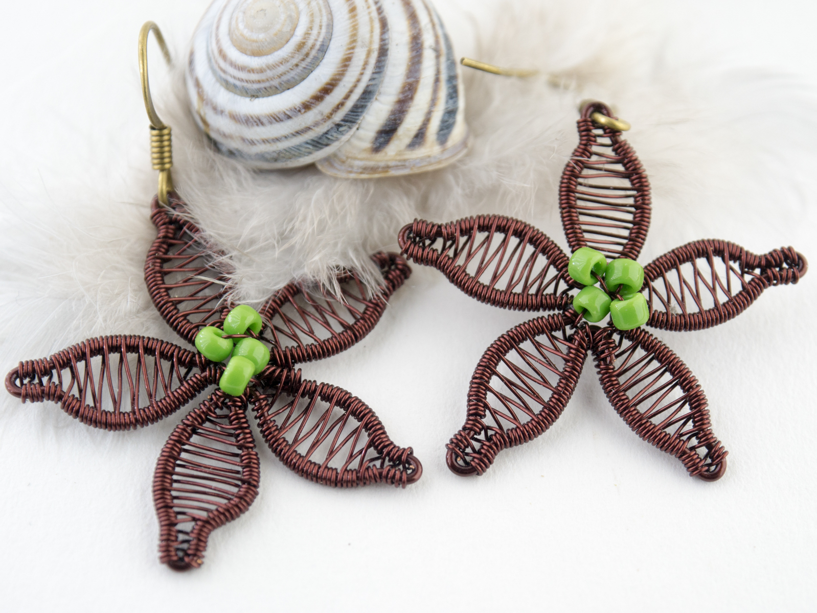Simpatični uhani so izdelani z ovijanjem barvne žice žice v obliko, poimenovano zvezdne rožice. Uhani so lahki, žica pa precizno navita, tako da se nikamor ne zatika. Možnost izdelave v poljubni barvi.
