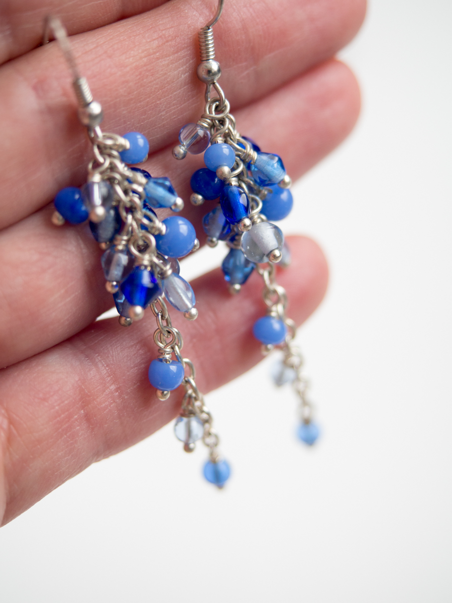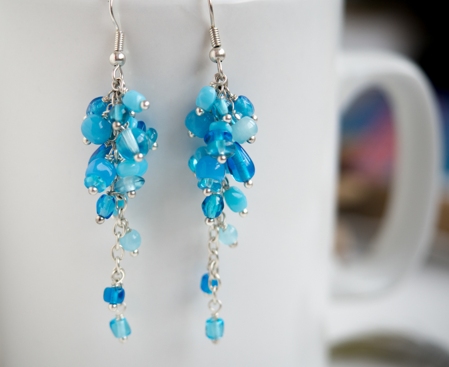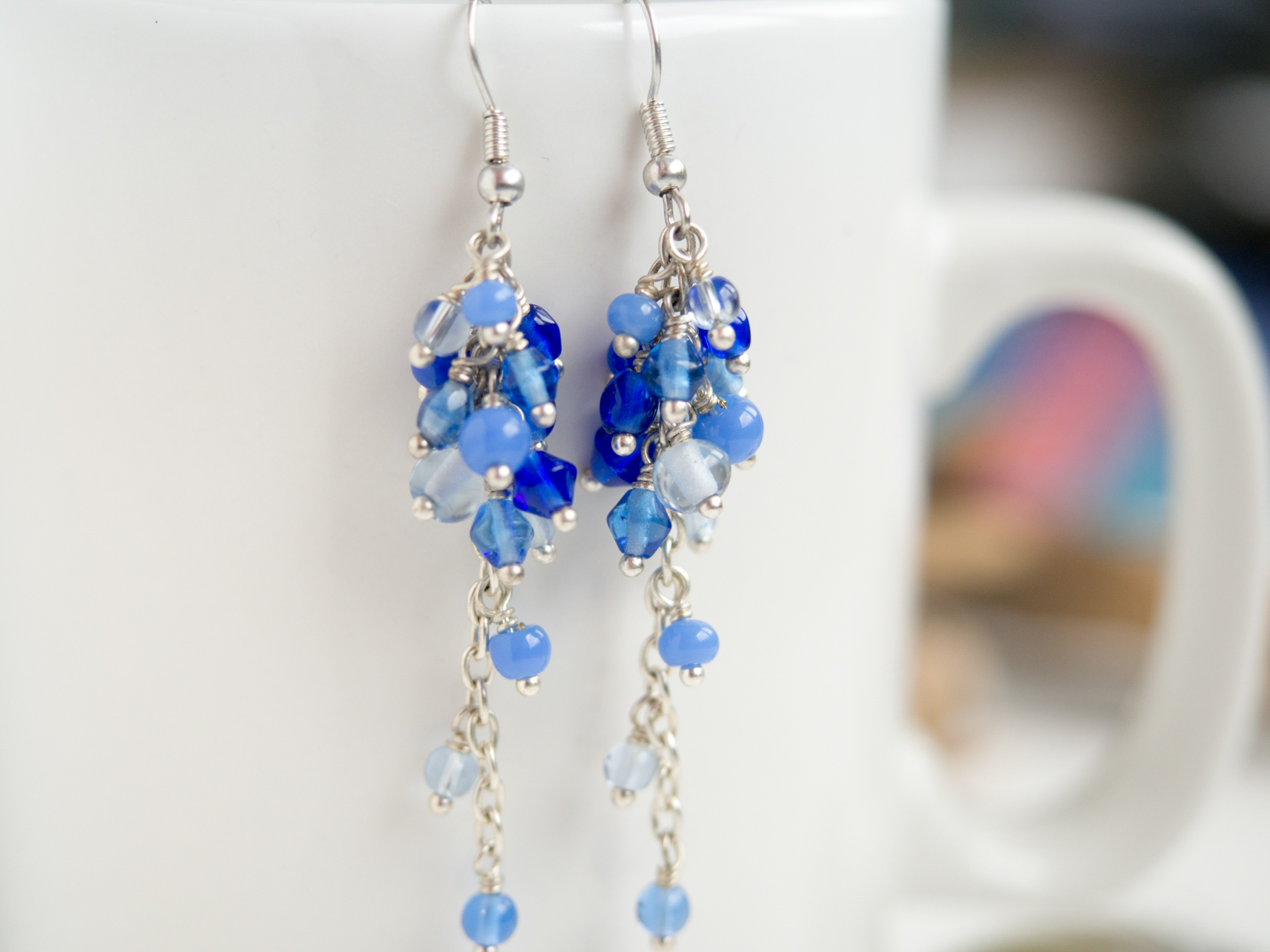 Uhani so ročno izdelani z različnimi steklenimi perlicami modrih odtenkov, natančno pritrjenih na osnovo iz srebrne žice. So zelo lahki in udobni za nošenje. Primerni so za vse letne čase in priložnosti saj dodajo svežino in eleganco vsakemu outfitu.