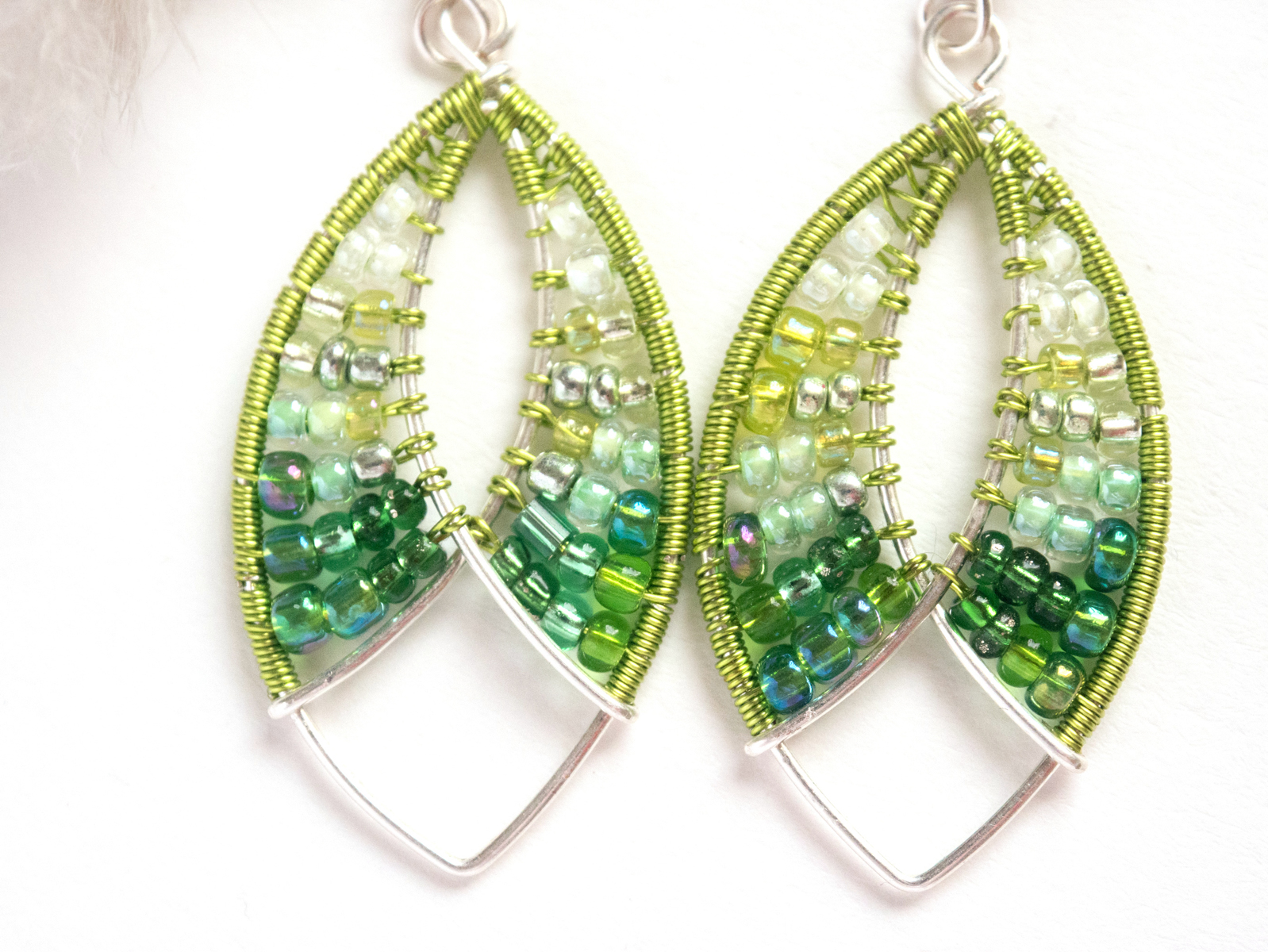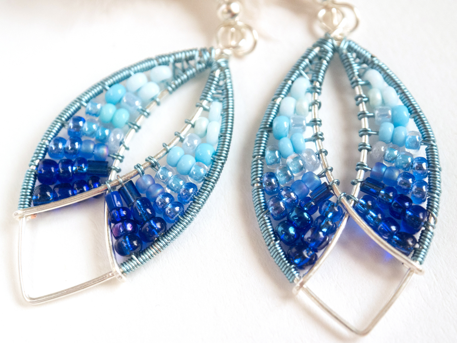 Ti unikatni uhani so izdelani iz žice in malih perlic v prelivajočih se odtenkih od temno do svetlo modre oz. zelene. Če vam je všeč dizajn uhanov, želite pa jih v drugi barvi, mi preprosto sporočite vaše želje!