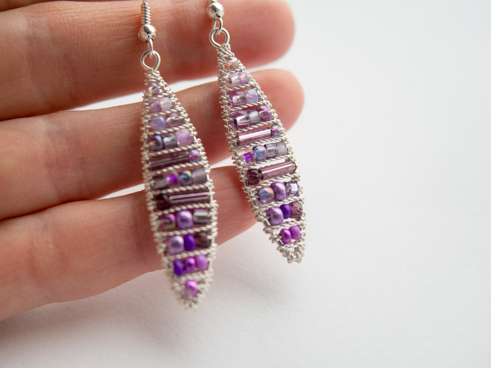 Uhani v prelivajočih odtenkih malih vijoličnih steklenih perlic, obdani z zvito bleščečo srebrno žico, so brezčasen dodatek s katerim ne morete zgrešiti saj je primeren za vsako priložnost.