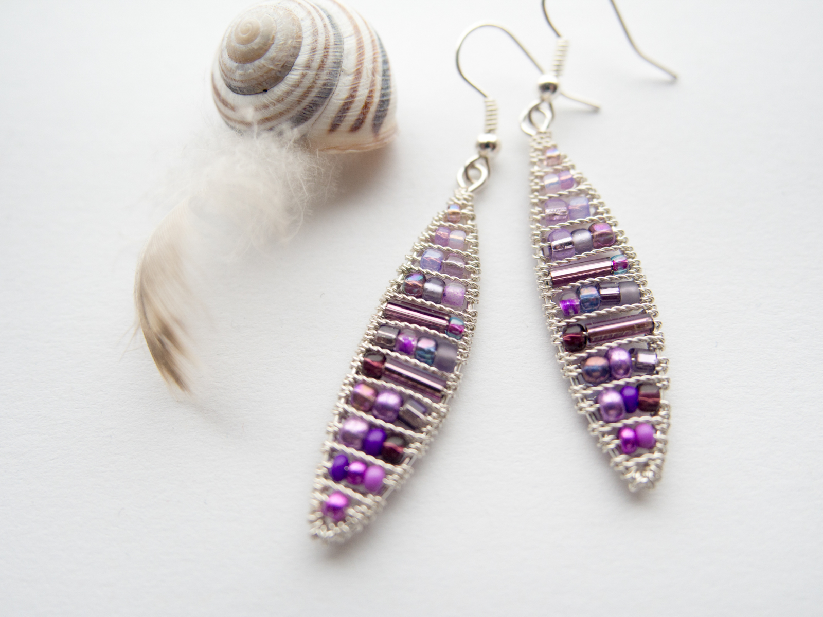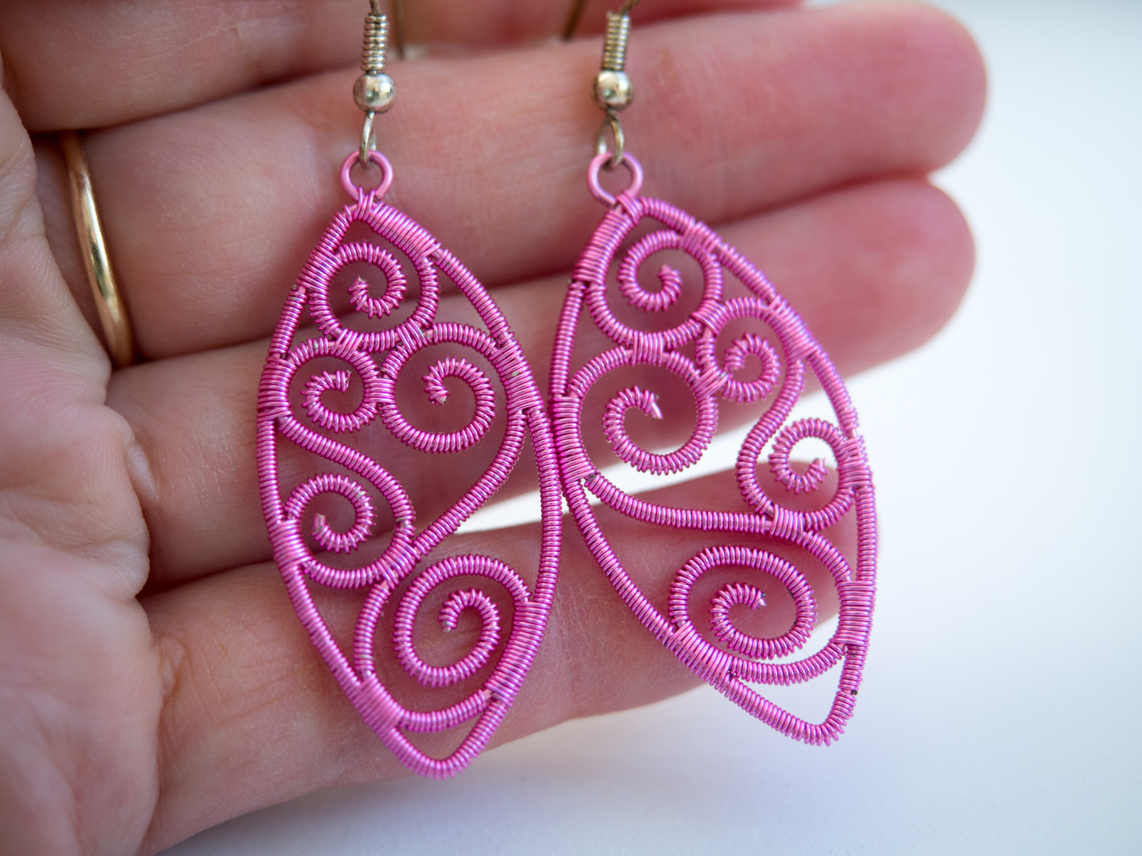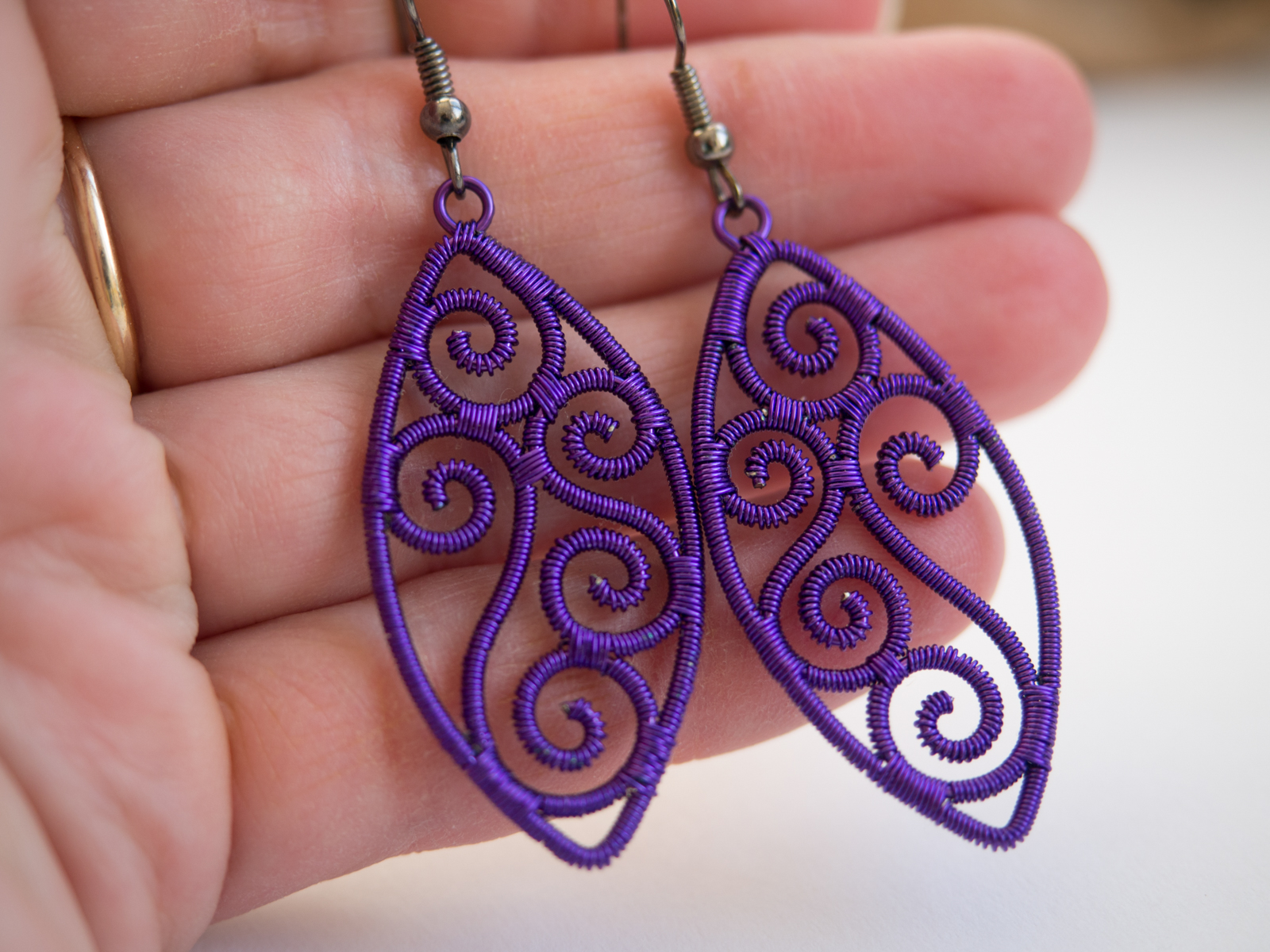 vijolični ovalni uhani iz žice