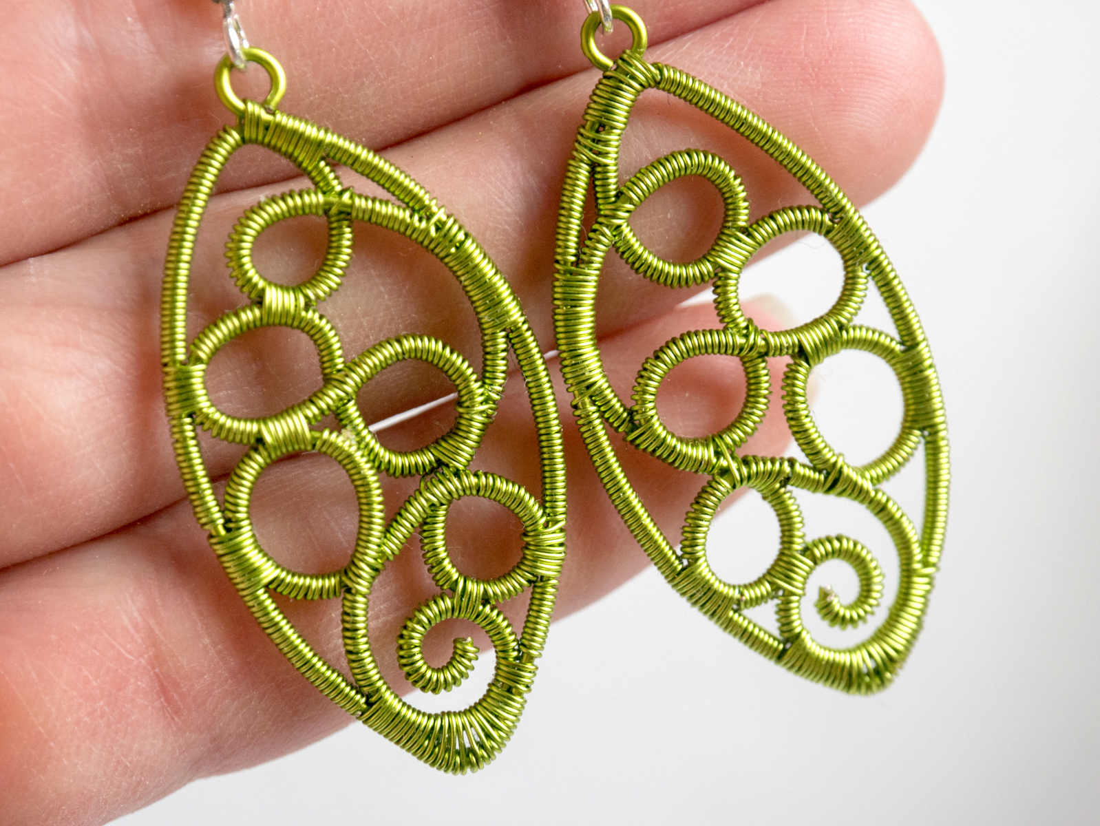 zeleni zviti uhani iz žice
