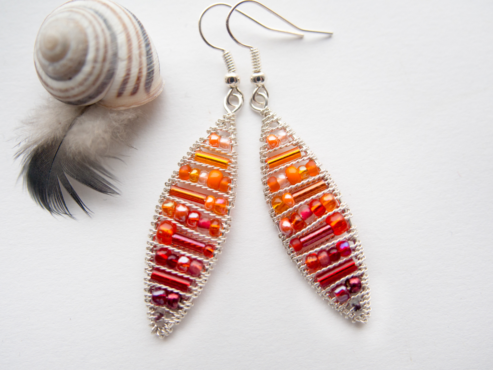 Srebrno in oranžno rdeči ovalni uhani