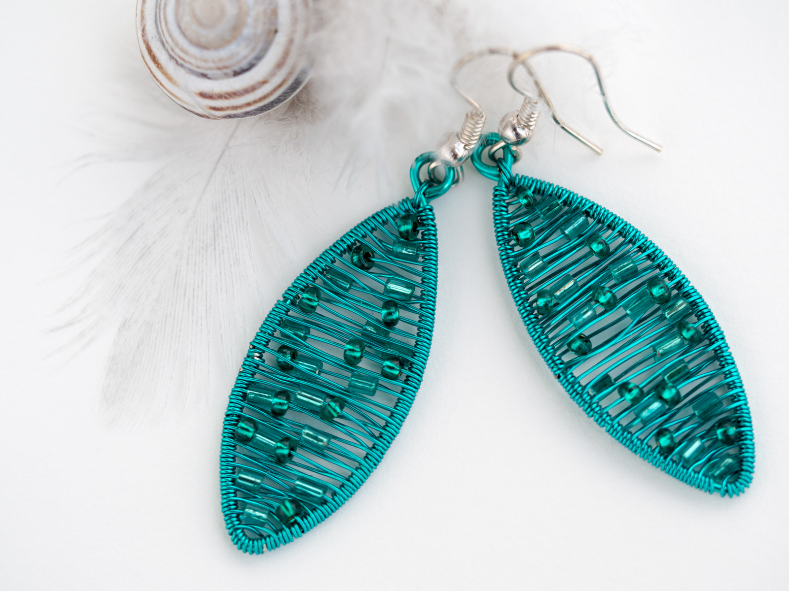 turkizni uhani iz žice – ‘polžki’