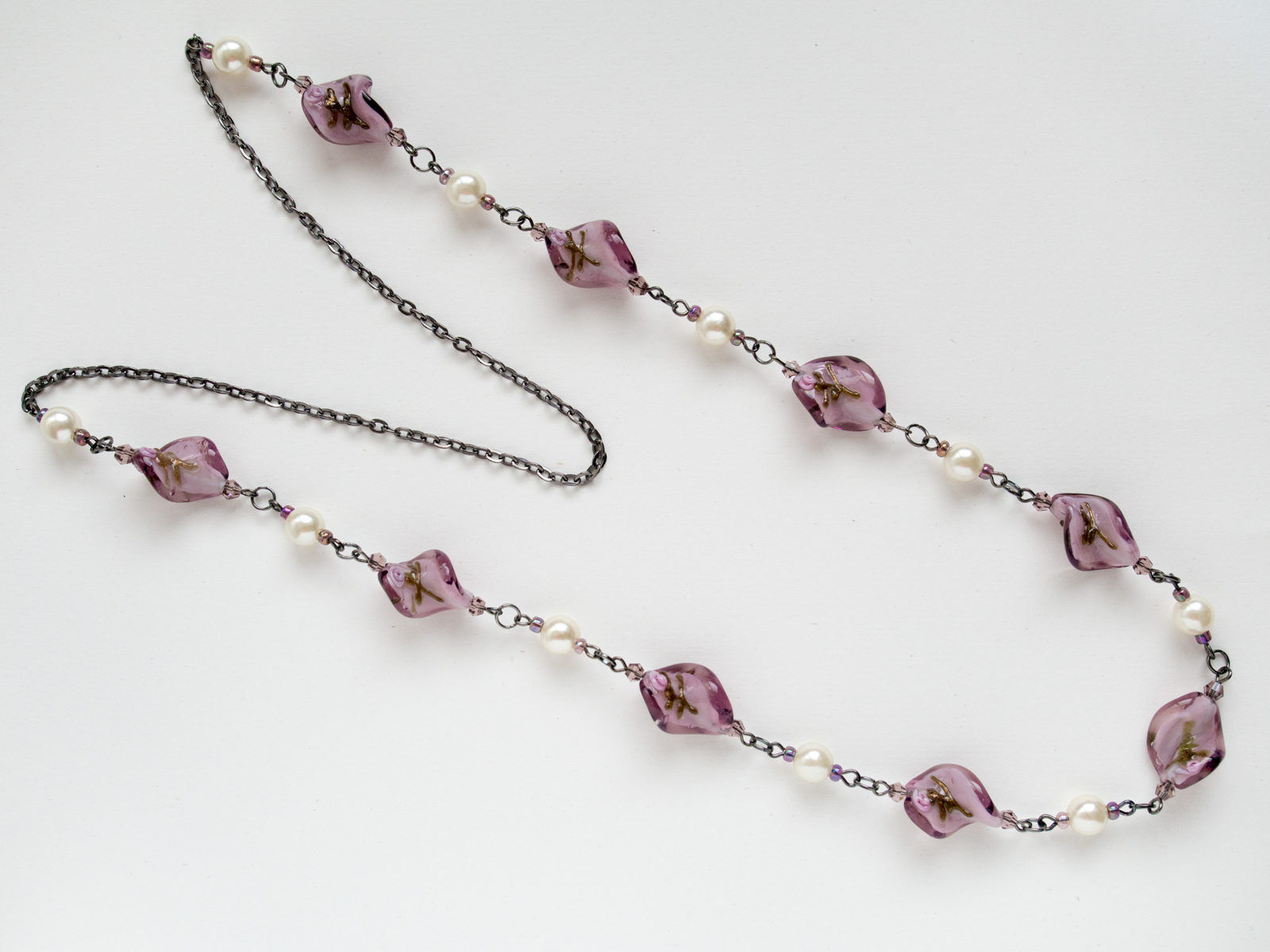 Unikatna ogrlica z zelenimi pikčastimi perlami
